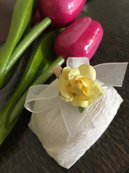 Маленькие мешочки с засахаренным горьким миндалем – это горько-сладкий символ семейной жизни. Число орешков в бомбонейре всегда нечётное: считается, что раз брак – это союз двоих, который не должен распадаться, это число не должно делиться на два.