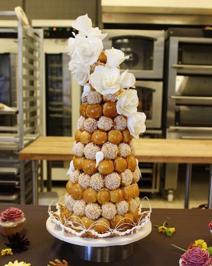 Ещё один нестандартный свадебный торт, изобретённый Антонином Каримом в конце XVIII века. Он состоит из огромного количества хрустящих заварных булок, сложенных в пирамиду или конус и скреплённых карамельным сахаром. «Крокембуш» означает «хруст во рту».